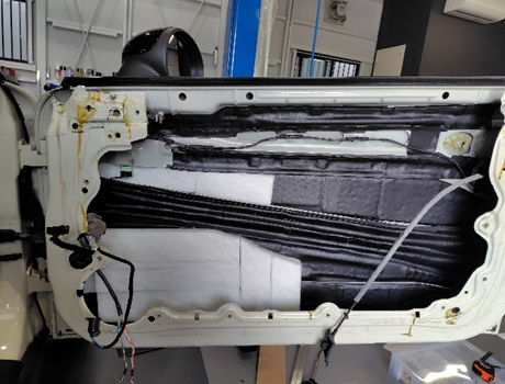 その状態が続くと吸音性はもちろんスピーカーやドア内部のモーター等の電装品の劣化やドア内部のサビ等の原因になってしまいます。